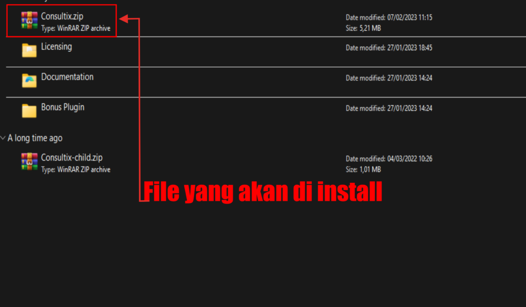 2.) Lalu setelah kita coba buka folder Exstractnya, maka kita akan melihat beberapa file dan folder di-dalamnya, namaun kita hanya menginstall file Consultix.zip. yang di tunjuk panah merah pada gambar 1 – 2 diatas,