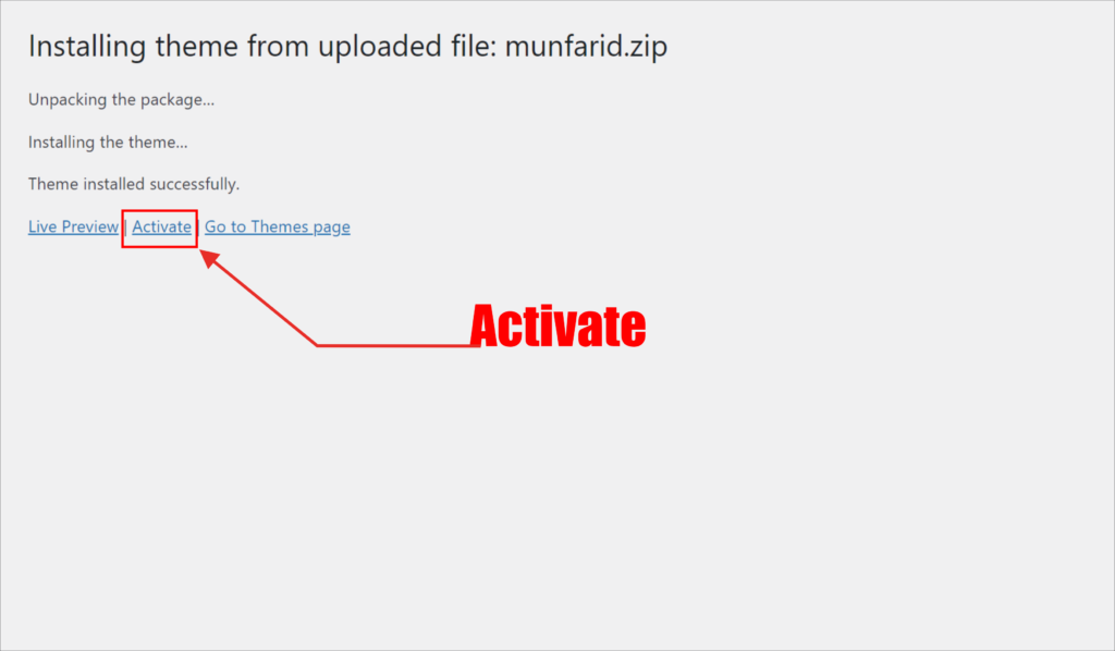 5.) Setelah Theme terinstall lalu Activate theme Munfarid nya, setelah aktif lalu lanjut ke langkah berikutnya