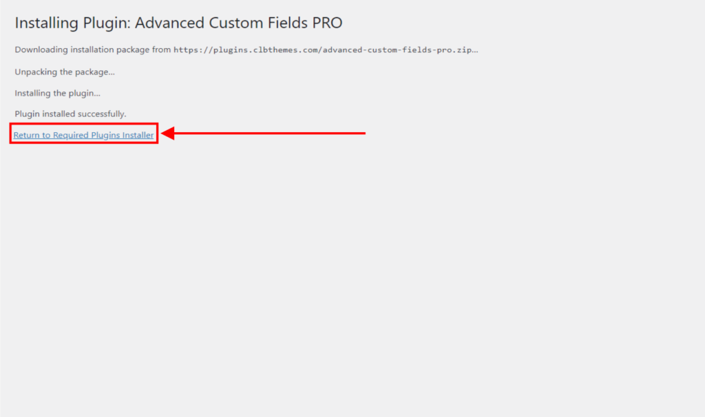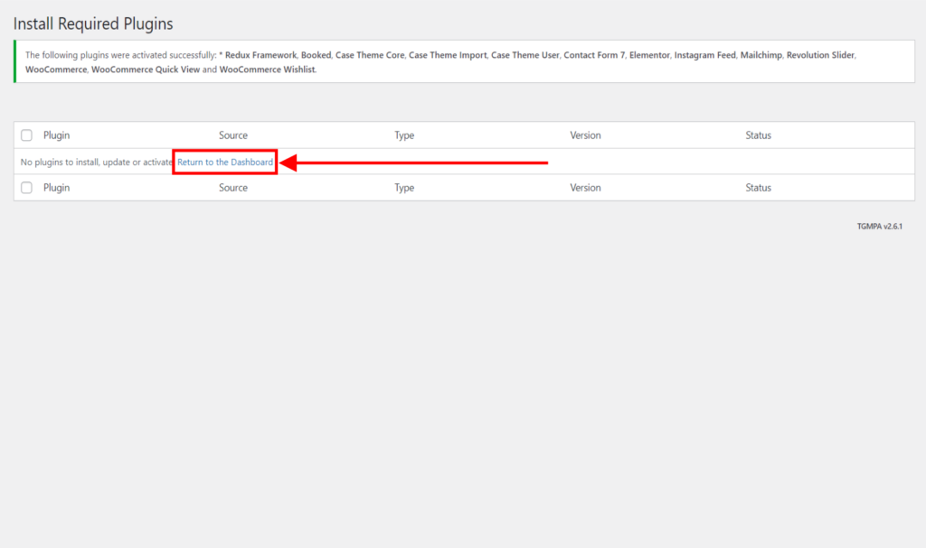 8.) Setelah plugin terintall lalu Click > Return to Required Plugins Installer