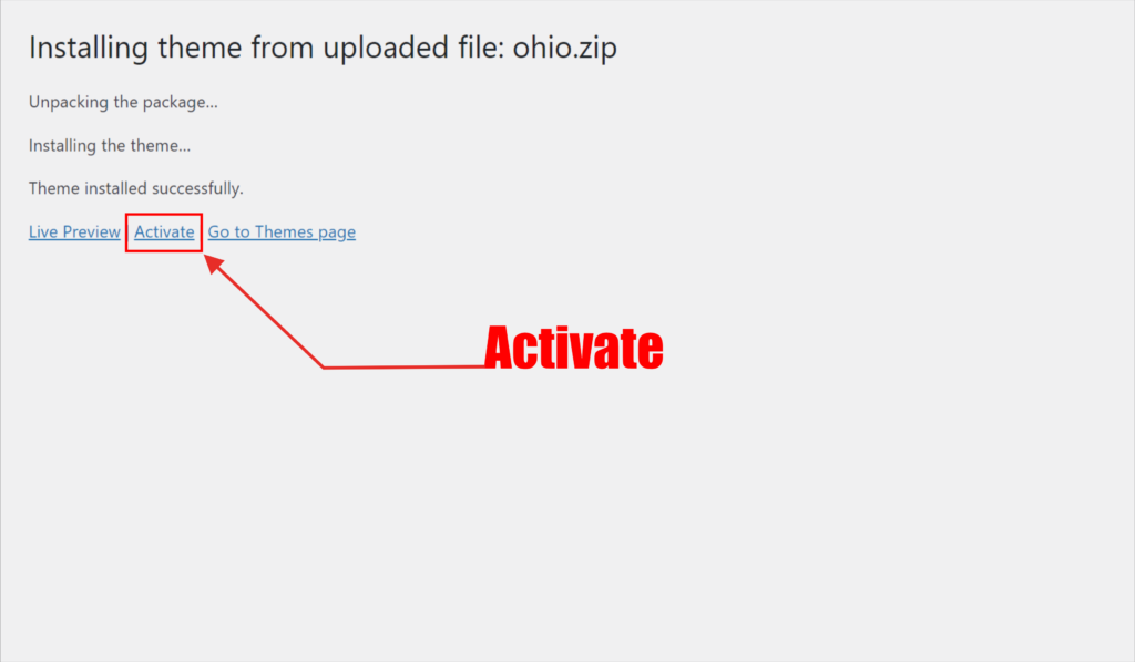 5.) Setelah theme Ohio, sudah terinstall lalu selanjutnya kita tinggal aktifkan themenya dengan Click > Activate. oke themenya sudah terinstall dan sudah terpasang, lanjut ke langkah berikutnya.