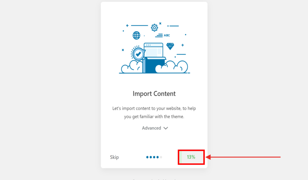 9.) selanjutnya pada Porses Import Content kita hanya perlu menunggu 10 – 30 menit hingga proses Install Import Content sampai terinstall 100% Sempurna, jangan skip atau refrsh page selama proses berlangsung.