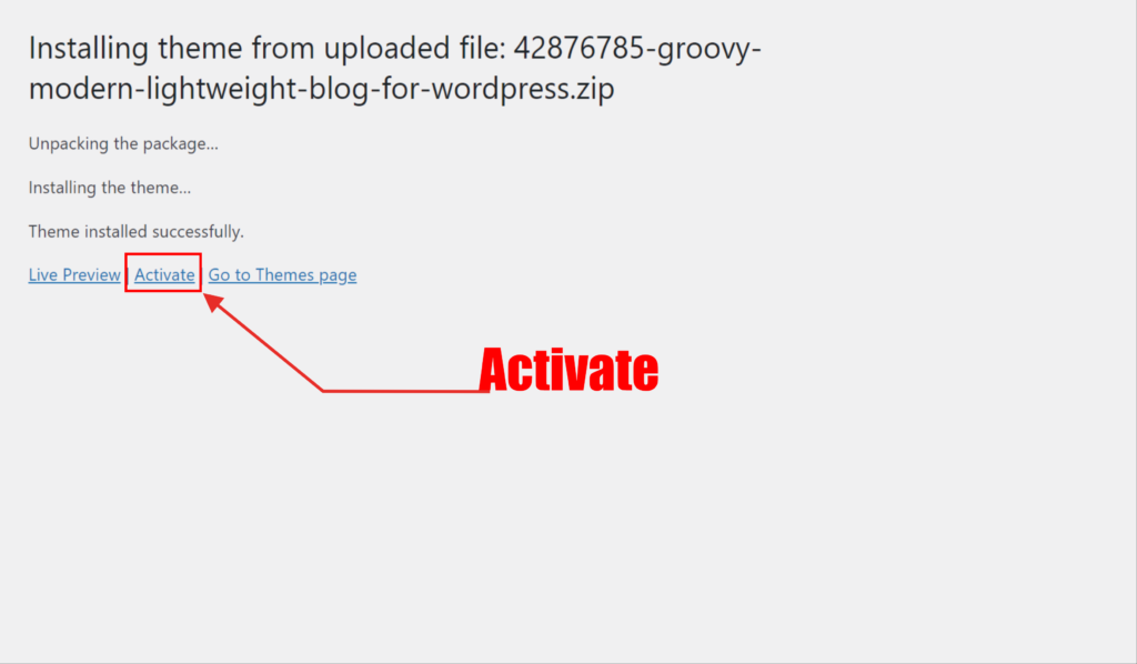 3.) Setelah theme Groovy. sudah terinstall lalu selanjutnya kita tinggal aktifkan themenya dengan Click > Activate. oke themenya sudah terinstall dan sudah terpasang, lanjut ke langkah berikutnya.