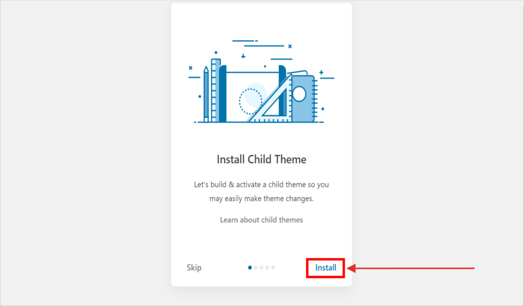 5.) lalu masuk pada Step-2, Install Child Theme, Click > Install