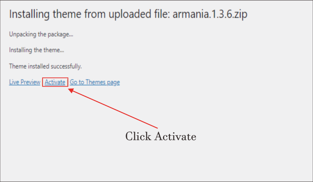 Setelah kita Click Activate maka Theme armania yang kita install akan aktif dan kita akan lanjut langkah berikutnya.