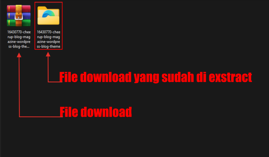 2.) Jika kita sudah Exstract File Downloadnya, lalu ketika kita mebuka Foldernya maka kita akan melihat beberapa file dan folder di dalamnya, lalu perhatikan pada gambar di atas File yang di tunjuk oleh panah merah pada gambar 1 – 2 diatas, adalah file yang nanti akan kita Install di wp-admin.