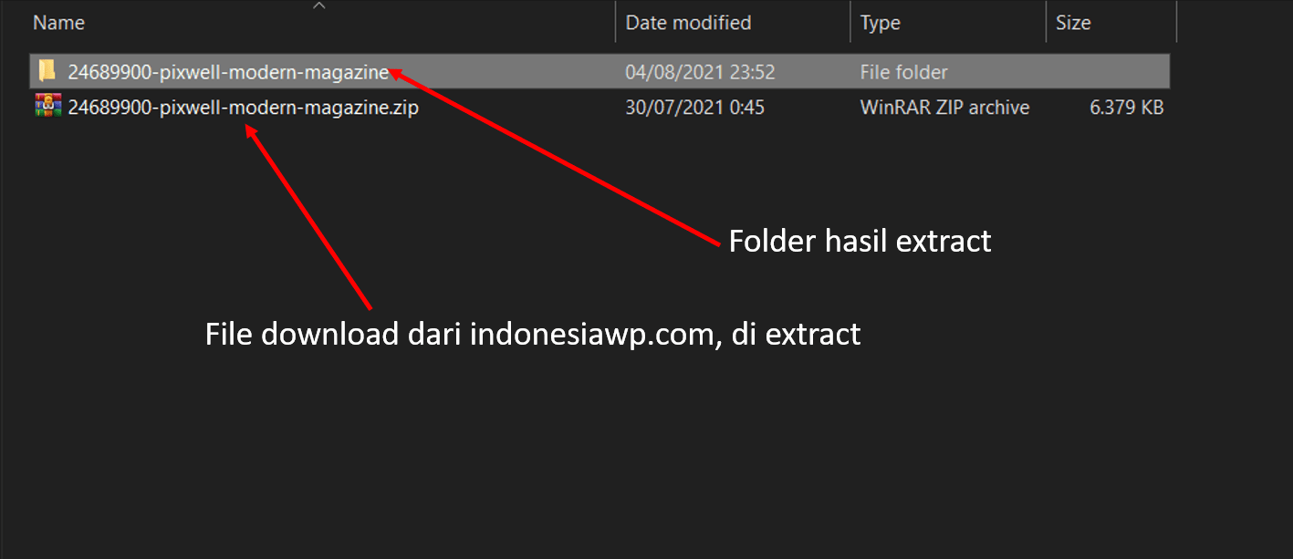 setelah beli theme pixwell versi terbaru dari KodingKu.in, file yang telah di download bisa langsung di extract.