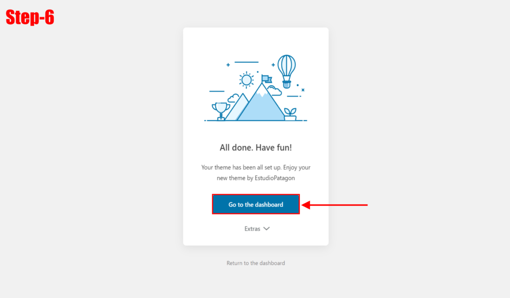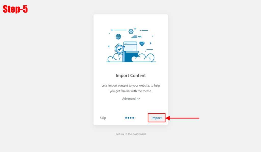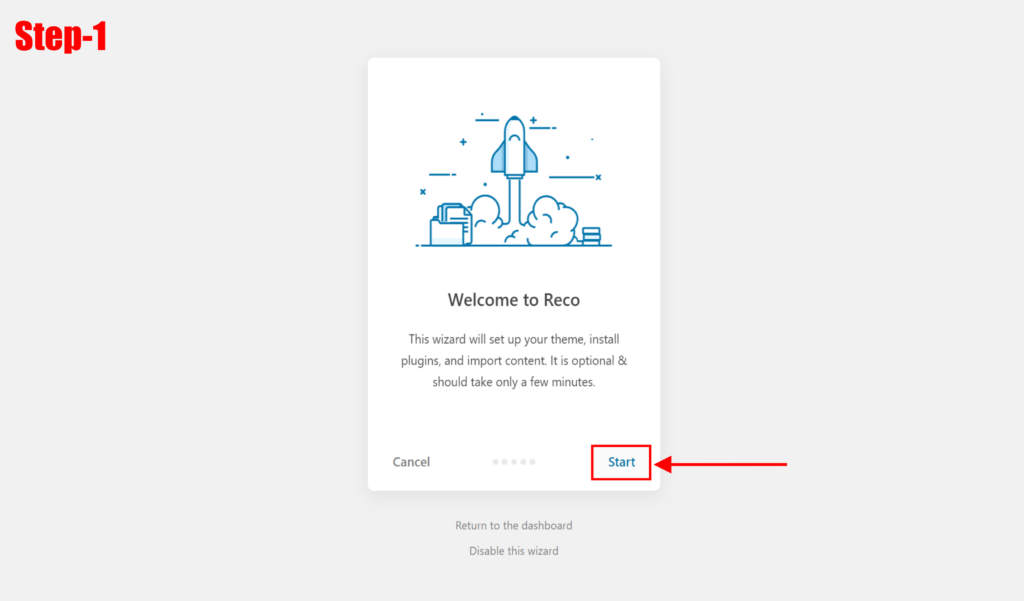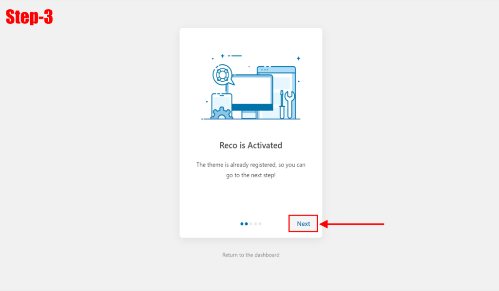 11.) Lalu pada Step-6, sampai di sini kita sudah selesai melakukan Setup Theme Reco, selanjutnya kita bisa cek Home Page Webiste kita yang sudah terintall Demo content, Oke lanjut Click > Go to The Dasboard, kemudian kita bisa lihat Website kita.