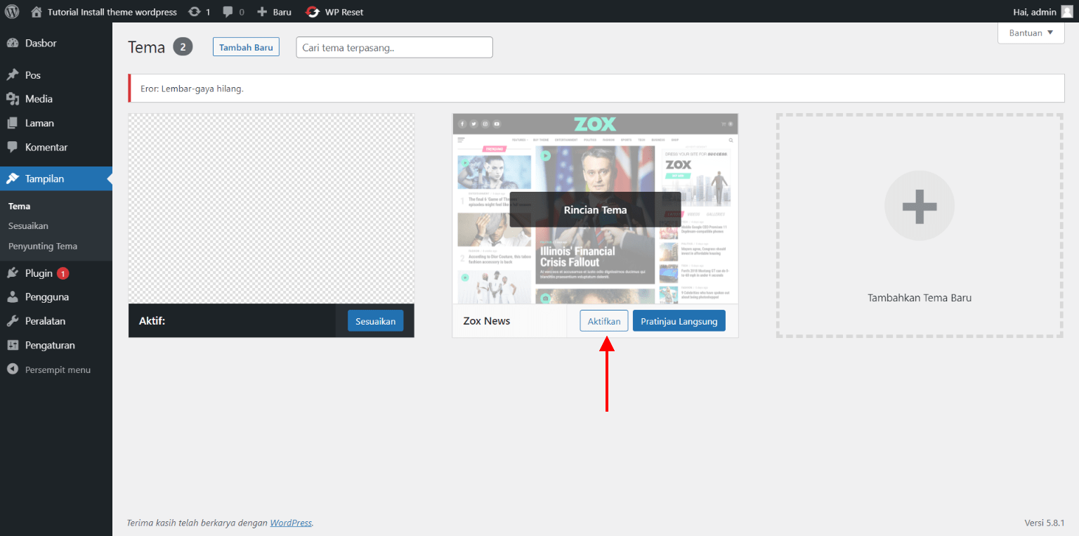 aktifkan theme (gambar 2)