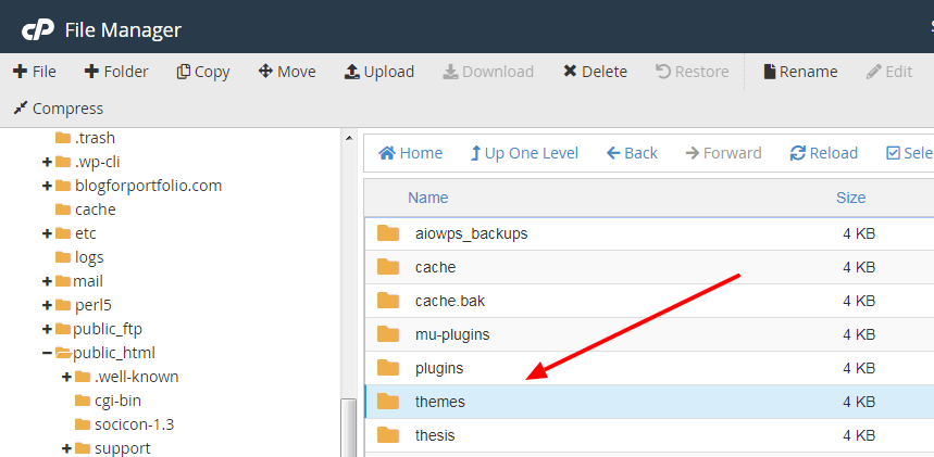 Pada gambar 2 ini adalah folder utama pada website anda dimana file image dan script website semua ada disini. untuk itu upload themenya bisa langsung ke folder public_html >> wp-content kemudian cari folder Themes, seperti gambar dibawah ini.